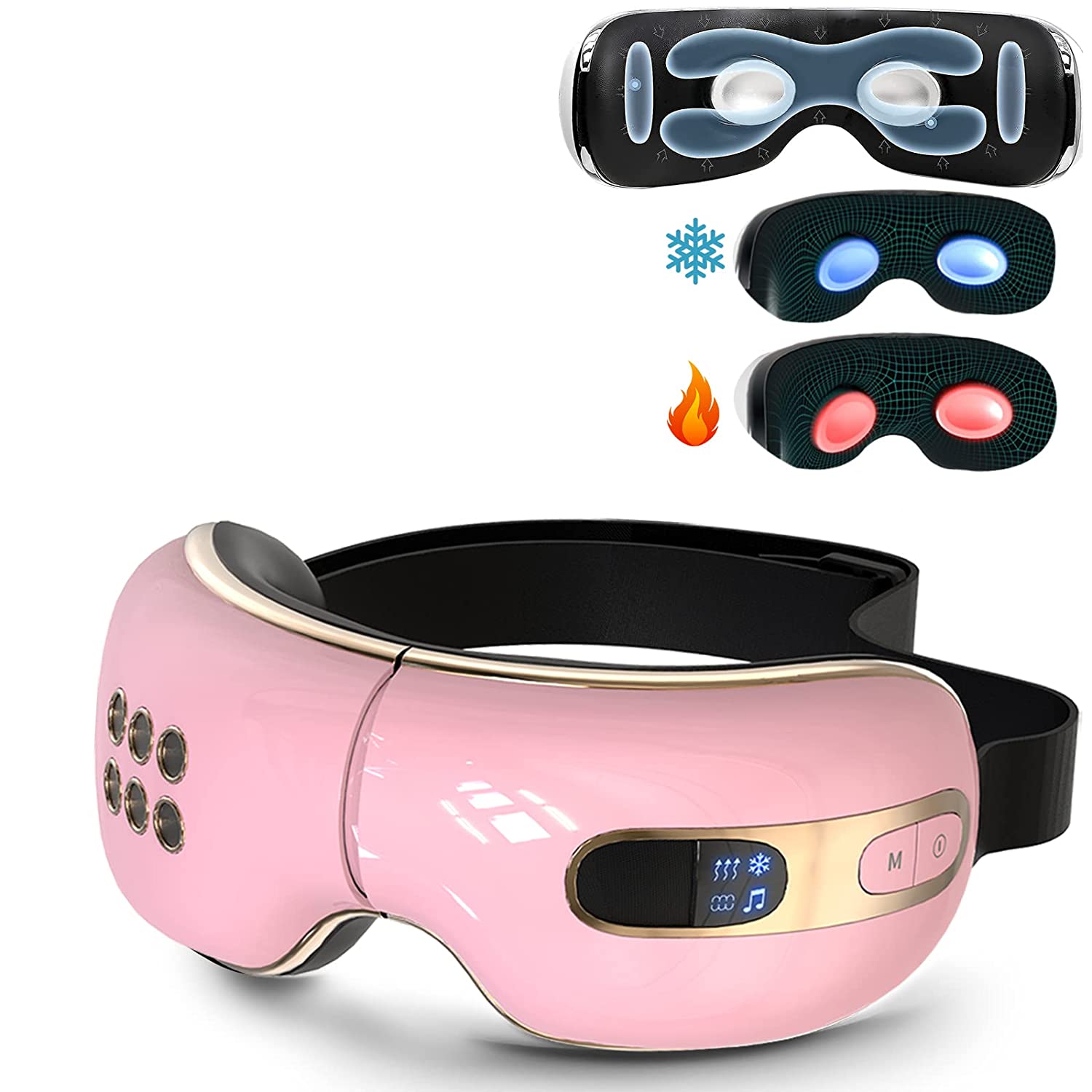 • ????【Ergonomic Design with Music】 The heat cooling bluetooth smart eye massager adopting groove design to care for eyeballs, dry eyes, the electric heated eye massager uses a combination of massage techniques with soothing music, relaxed air pressure, skin-friendly leather material and adjustable headband, fits most faces and comfortable to wear.
