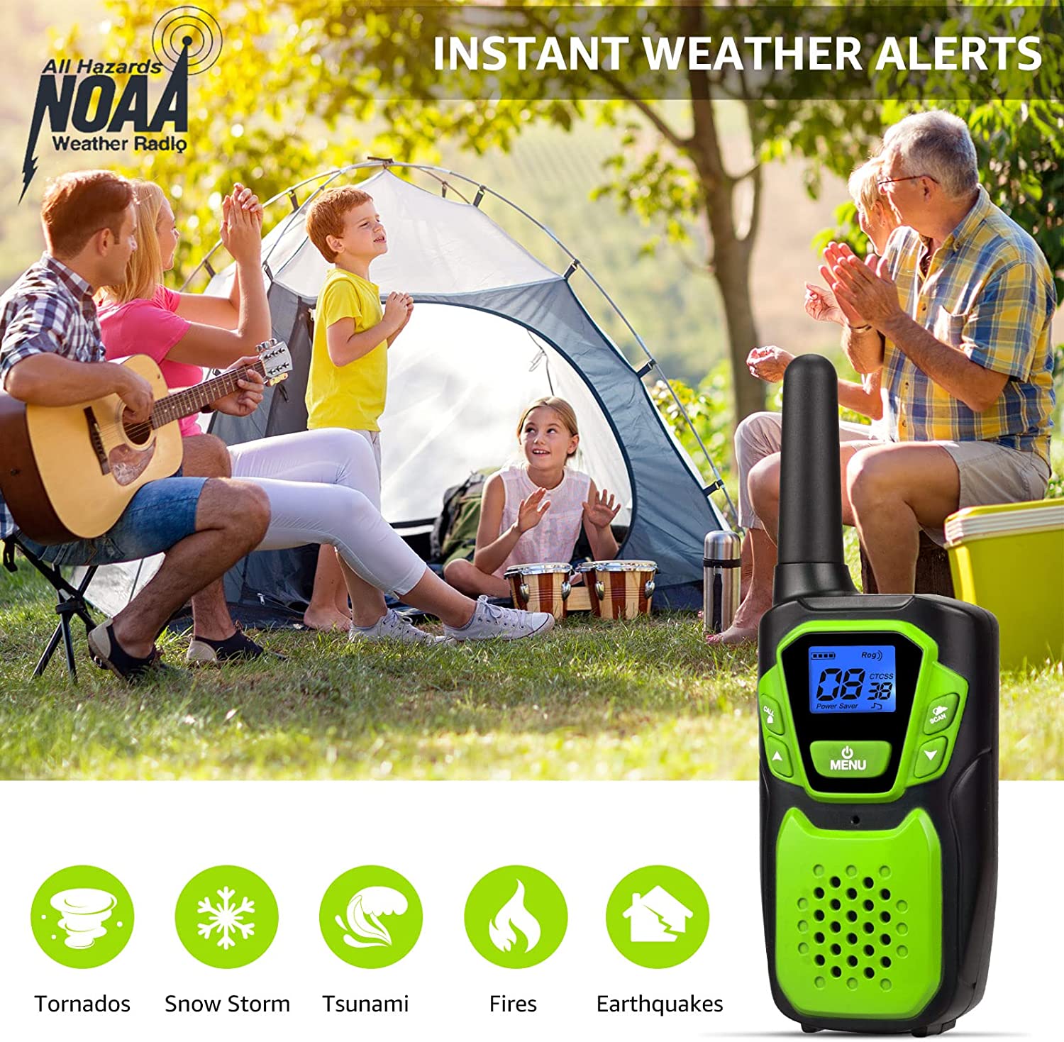 - 【NOAA WEATHER ALERT】NOAA Weather Scan will automatically scan through 16 available weather (WX) band channels and locks onto the strongest weather channel to alert you of severe weather updates. NOAA Weather Alert will sound an alarm indicating that there is a risk of severe weather in your area.